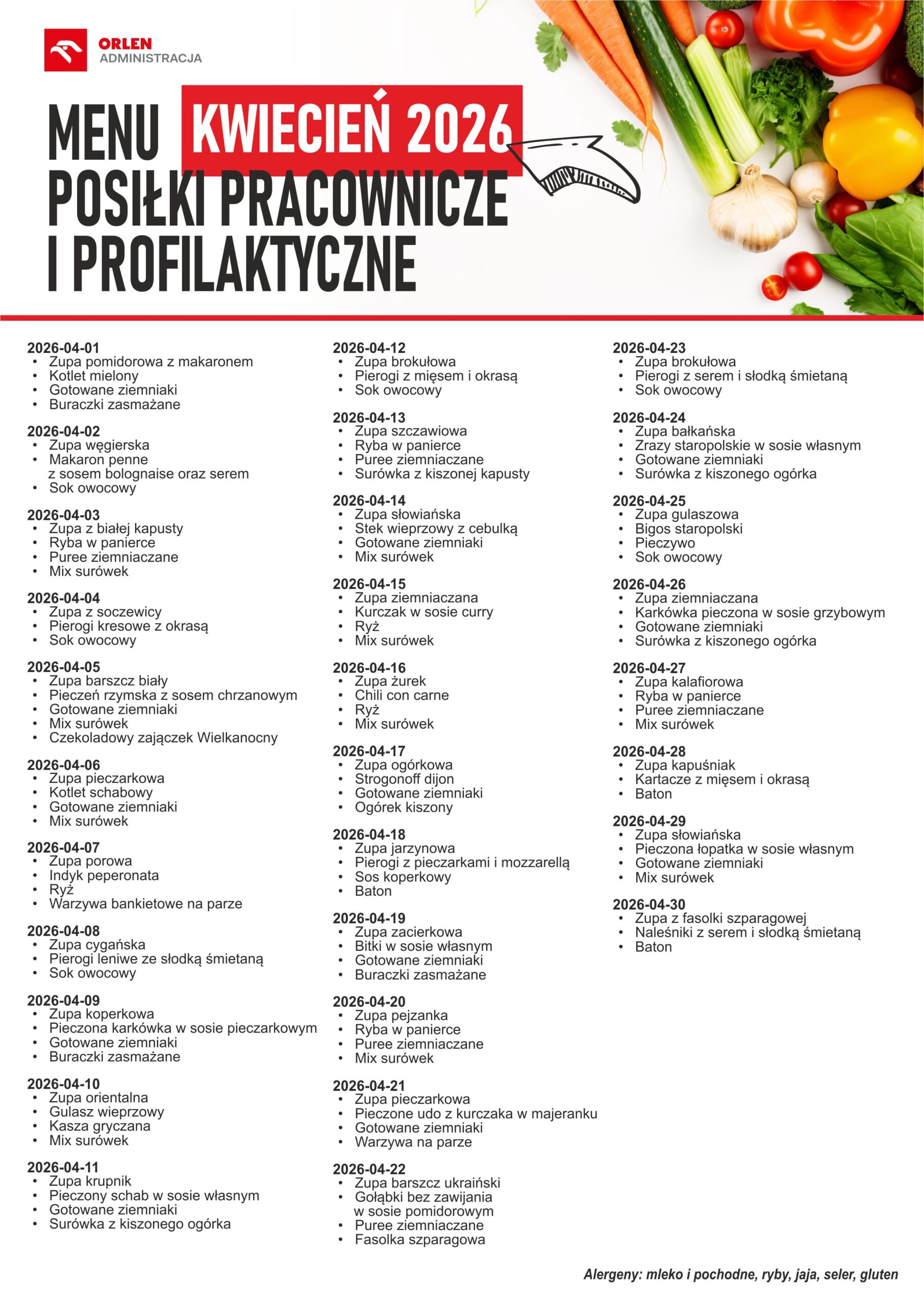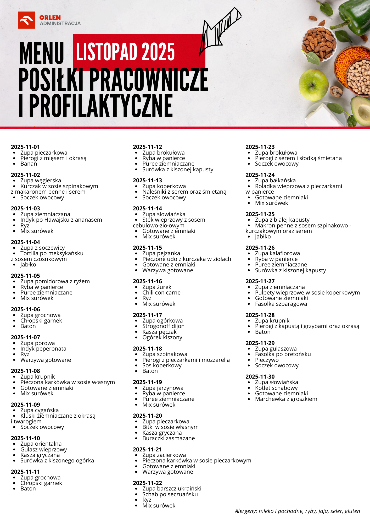 W tym miejscu będziemy zamieszczali menu posiłków pracowniczych . Menu pojawi się niezwłocznie po otrzymaniu go od operatora czyli ORLEN Administracji.